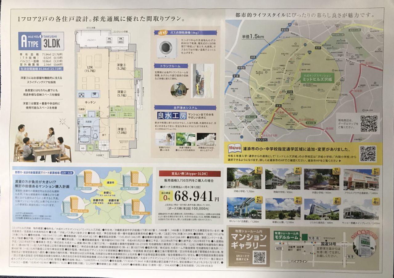 さて今日はミッドヒルズ沢岻で小学校区域がちょっと遠いなぁ………との